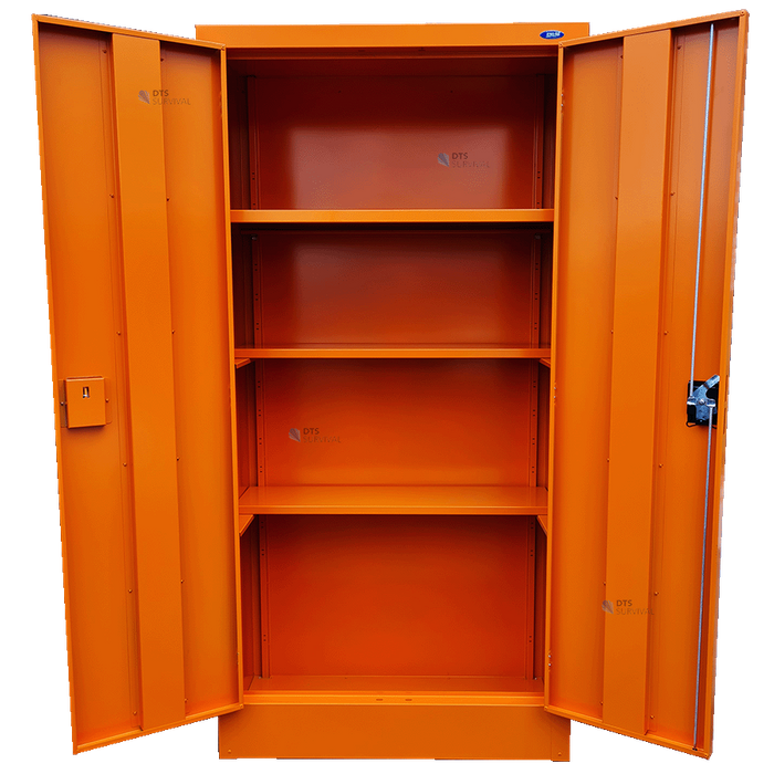 Civil Defence Cabinet – Medium (Empty, Hi-Vis Orange) A high-visibility orange steel cabinet designed for organised storage of civil defence or emergency response equipment. Measuring 1800 (H) × 1000 (W) × 460 (D) mm, it provides ample space for essential supplies while remaining compact enough for workplaces, schools, or public facilities. Supplied empty and ready for custom stocking, this durable cabinet features a blank front suitable for labelling or signage. Built to stand out and ensure emergency gear is always easy to find.