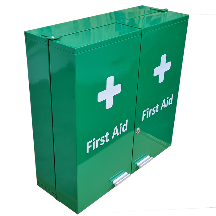 First Aid Metal Box Double Door X Large Wall Mountable Green Empty size 53 x 53 x 20cm