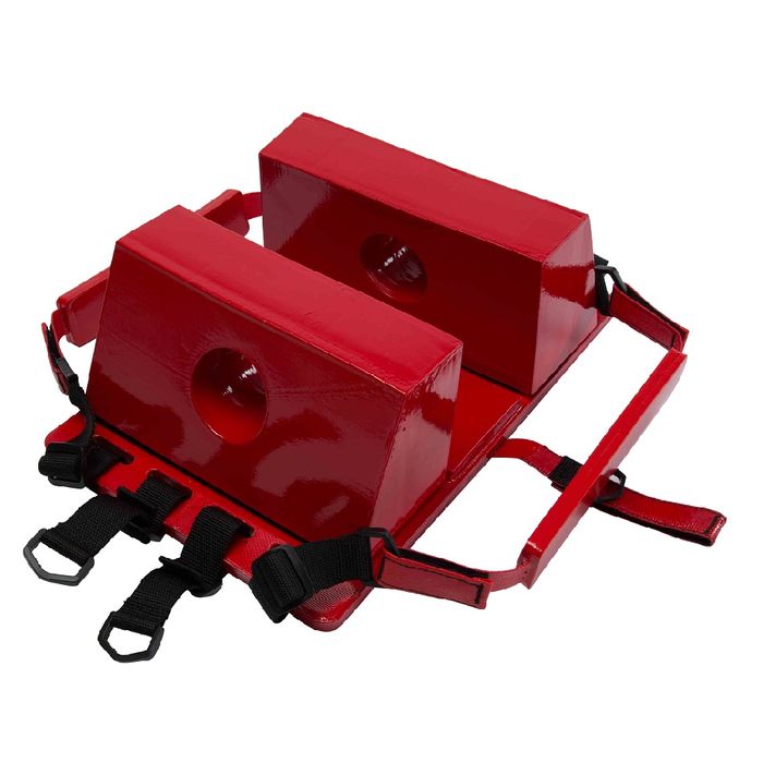 This head immobilization device can aid to securely stabilize a patient's head during transport, helping to limit potential injuries. It features a durable base and high-density polyethylene blocks that resist punctures and tears. Soft, disposable foam block pads and adjustable head straps ensure comfort and maintain hygiene standards. The system is quick and easy to use with a four-step application: position the head on the base, align and adjust the blocks, lock them in place, and secure the head and chin. The entire process can be completed in just a few minutes. Correct training is essential and should not be attempted unless competent. Latex-free and radiolucent, the device is fully compatible with CT and MRI scans, allowing for uninterrupted imaging while maintaining head immobilization.