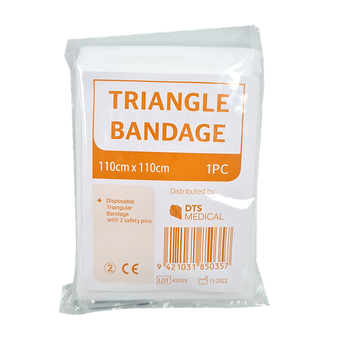 A disposable non-woven triangular bandage is a versatile first-aid item used for creating slings, securing dressings, or providing support to injured body parts. Lightweight.