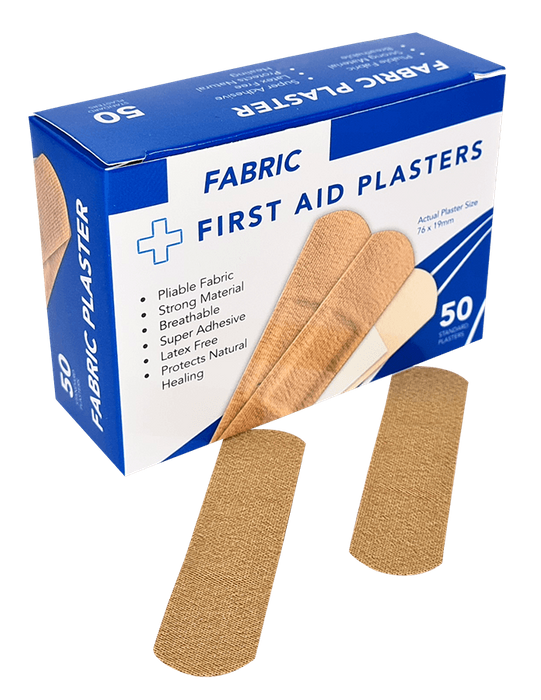 Fabric first aid plasters in skin colour are designed to blend in with the skin's natural tone, offering discreet wound protection. Made from flexible, elastic fabric, these plasters provide a comfortable fit, allowing for ease of movement while securely covering cuts, blisters, and abrasions. The stretchiness ensures the plaster conforms to the body's shape, offering optimal protection without restricting mobility. Ideal for everyday use, they are discreet, breathable, and super sticky, making them a reliable choice for minor injuries.