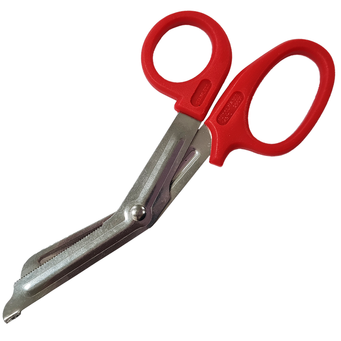 First aid rescue shears are heavy-duty, specially designed scissors used for emergencies, allowing for quick and safe cutting through various materials like clothing, seatbelts, bandages, and medical tape. These shears typically feature a curved, blunt-tip blade on one side to prevent injury to the patient while cutting, and a sharp, angled blade for efficient cutting through tough fabrics. They are commonly used by medics, first aiders, paramedics, first responders, and in emergency medical kits, offering an essential tool for saving time and preventing further injury during critical situations.