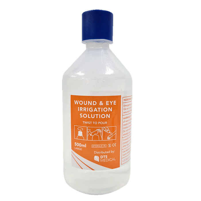 Saline Solution Bottles Sterile saline solution supplied in capped bottles for use with gauze, dressing packs, and kidney dishes during wound cleansing and irrigation. Each bottle features a twist-off cap that breaks cleanly to open, allowing controlled pouring without the need for an eye nozzle. Intended for single-use procedures where sterile saline is required for cleaning or rinsing wounds. Available in 100 ml, 250 ml, and 500 ml sizes.