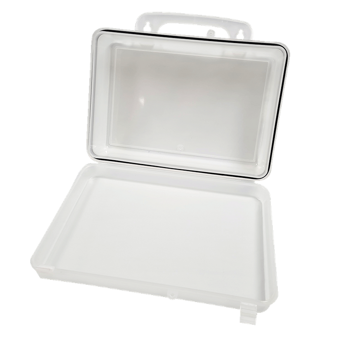 First Aid Box Plastic, Clear, Medium Wall Mount Flap Single Cavity Empty No Stickers Blank