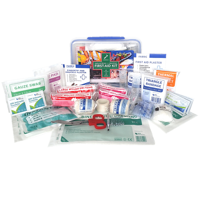 First Aid Kits – Industrial & Marine Range A robust range of first aid kits designed for demanding industrial and marine environments. Built for reliability, these kits contain a comprehensive selection of quality supplies suitable for managing most workplace injuries. Available in a variety of sizes and container styles to suit different applications — from workshops and factories to boats and offshore sites. Durable, well-organised, and ready for tough conditions where preparedness matters most.