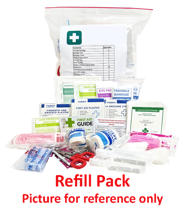 Crafted with care by our dedicated team in Whanganui, New Zealand, this refill pack for the Workplace 1-50 Person First Aid Kit offers a convenient way to replenish your supplies. It comes in a resealable snap-lock plastic bag, clearly labelled with its contents. Compact and lightweight, measuring approximately 30x45x7cm and weighing around 1kg, it's an essential addition to keep your first aid kit fully stocked and ready for any situation.